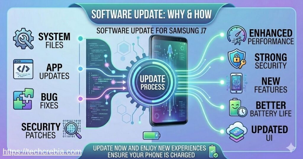 Updating your phone with the Samsung J7 software update is very important. Many people overlook updates, which can cause problems later. Updates help your phone stay fast, smooth, and secure.